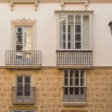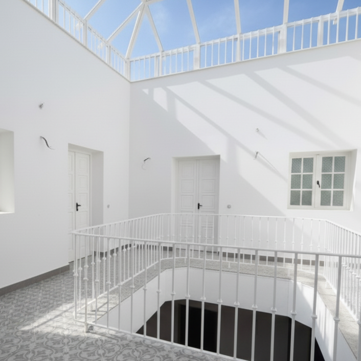 – Fachada neoclásica rehabilitada, preservando el carácter histórico.